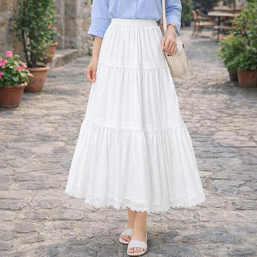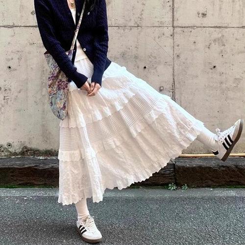 [다잇템]여자 레이스 티어드 로맨틱 롱 클래식 스커트