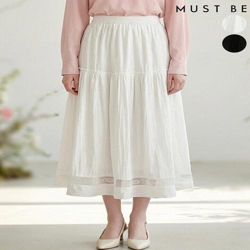 [머스트비]여성 밑단 레이스 밴딩 롱 플레어 스커트