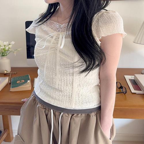 귀여운 레이스 포인트 슬림라인 레이어드 반팔티셔츠 WFJJO13