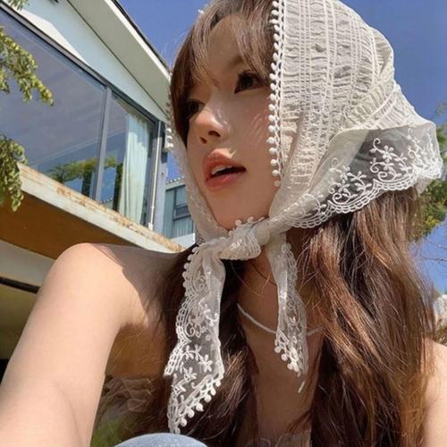 흰색 달콤한 레이스 꽃 스카프 우아한 여성스러운 머리띠 얇은 통기성 예술적 스타일 여행 액세서리