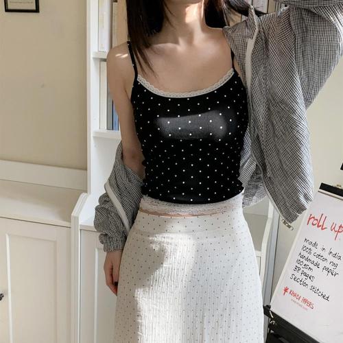 [다잇템]여성 땡땡이 레이스 캡내장 슬림핏 끈나시