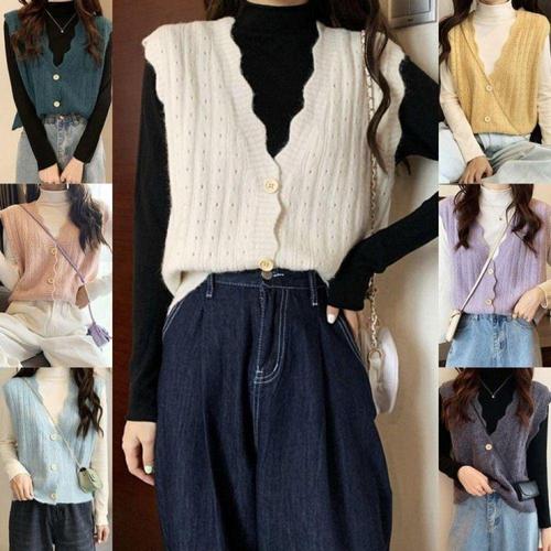 [오너클랜]인기상품 레이스 펀칭 여성용 데일리 니트 가디건 겨울용 털 조끼 [WFLHZJE_260227]