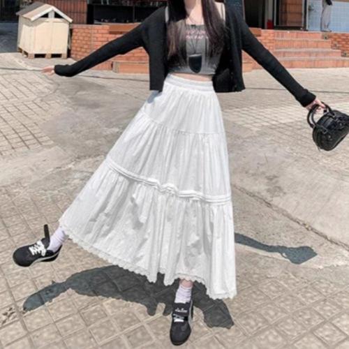 [오너클랜]인기상품 화이트 레이스 여성용 플레어 롱 스커트 데일리룩 [WFLILN7_260301]