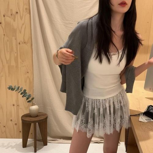 [옷자락]여성 심플 레이스 프릴 레이어드 나시