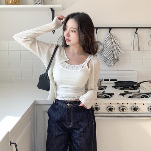 [유야]여성 캡내장 레이어드 레이스 골지 끈 나시 -FSL0055- 봄 여름