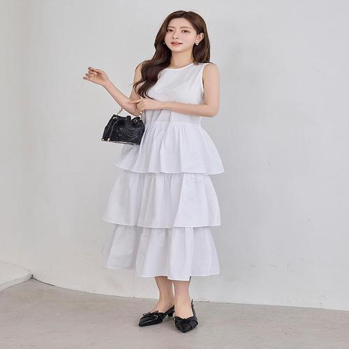 플레어 레이어드 민소매 슬리브리스 롱 원피스 (HSJ-WE46032)