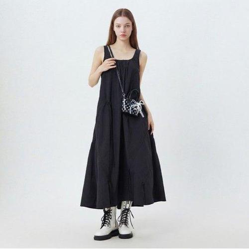 더한땀 플레어 A라인 민소매 레이어드 롱 원피스 오피스룩 하객룩