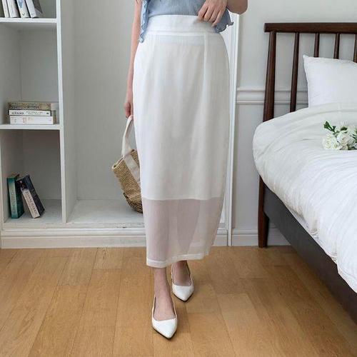 [옷자락] 여자 뒷밴딩 시스루 레이어드 에이치 라인 롱스커트
