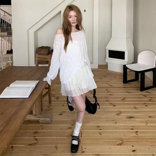 [옷자락] 여자 봄가을 데일리 시스루 레이어드 긴팔 니트