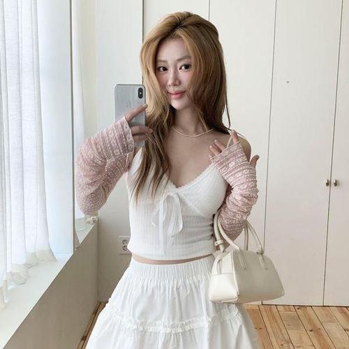 여름 얇은 여자 여리 티셔츠 루즈핏 레이어드 시스루 WFKBX8V