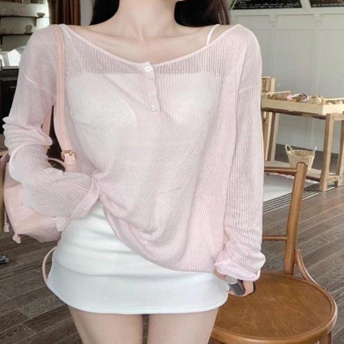 여름티셔츠 레이어드 여름 냉방 룩 롱슬리브 긴팔 티셔츠 시스루