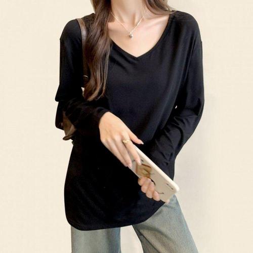 [오너클랜]인기상품 여성 브이넥 레이어드 긴팔 티셔츠 오버핏 기본 무지 긴팔티 [WFLLIFQ_260305]