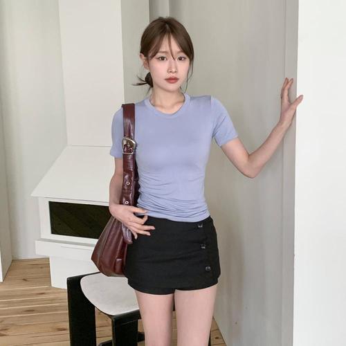[다잇템]여자 반소매 레이온 슬림핏 U넥 편한 티셔츠