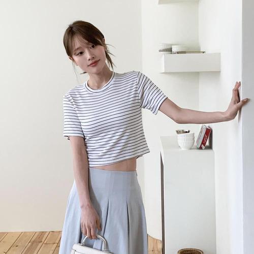 [다잇템]여성 레이온 줄무늬 클래식 봄여름 티셔츠