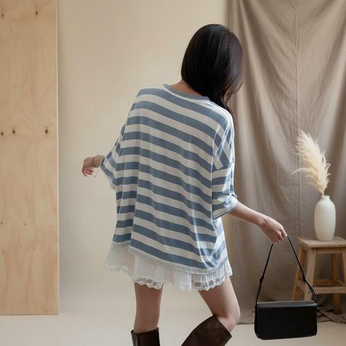 [옷자락]여성 봄여름 레이온 루즈핏 단가라 데일리 티셔츠