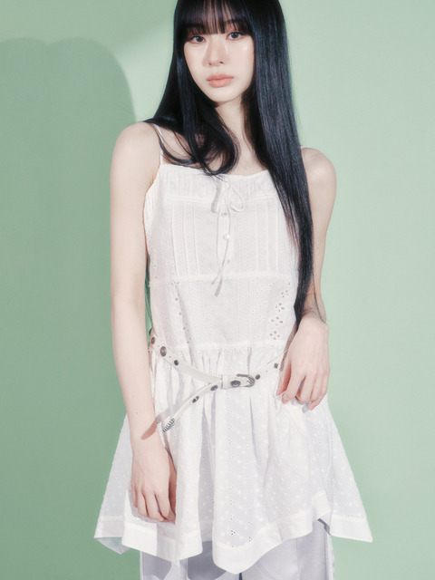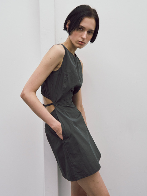 [디어로우]레이르 버튼 셔츠 슬리브리스 미니 원피스