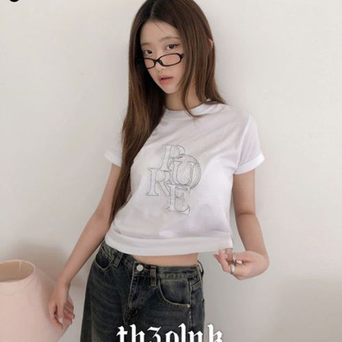더핑크 / 라히 레터링 패치 세미 크롭 반팔티