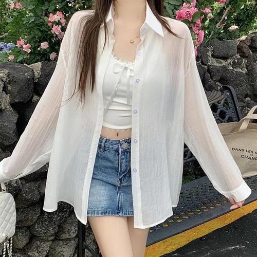 여성 여름 데일리 베이직 심플 루즈핏 블라우스 셔츠