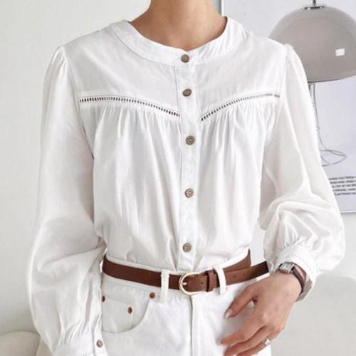 [에이치플러스몰]데일리 여성 심플 고급 펀칭 퍼프 소매 블라우스