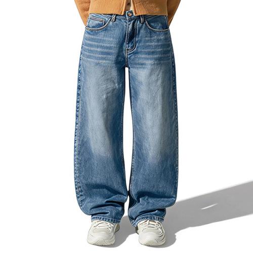 [네스파]로드 여성 와이드핏 블랙 워싱 데님 팬츠 [NSPD_2002]