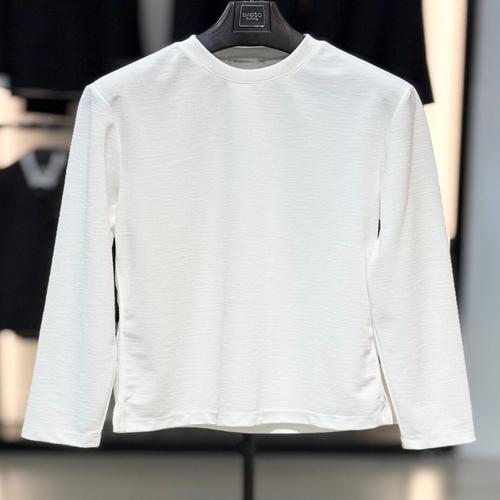[바쏘옴므]화이트 면 혼방 텍스처드 긴팔 라운드 티셔츠_SC