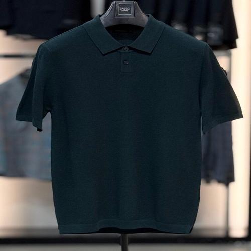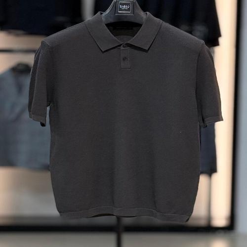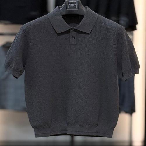 [바쏘옴므]차콜 면혼방 와플 카라 반팔 니트_SC