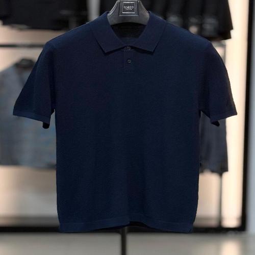 [바쏘옴므]네이비 린넨 블렌드 와플 면스판 카라 반팔 니트_SC