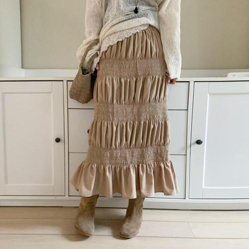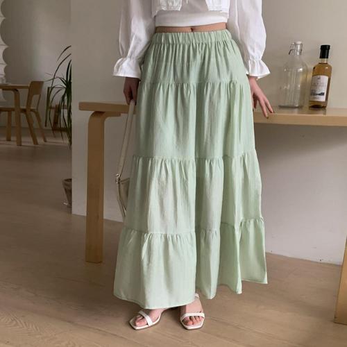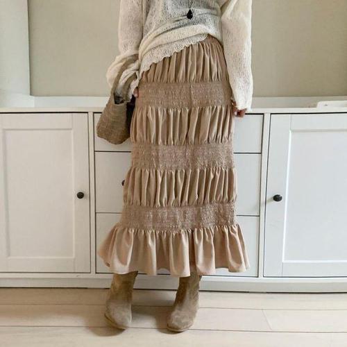 [옷자락]여자 로맨틱 페미닌 데이트룩 데일리 밴딩 셔링 캉캉 롱스커트