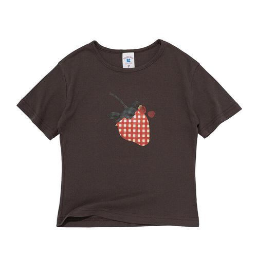 [로아드로아]피크닉 체크 스트로베리 크롭 반팔티 (브라운)