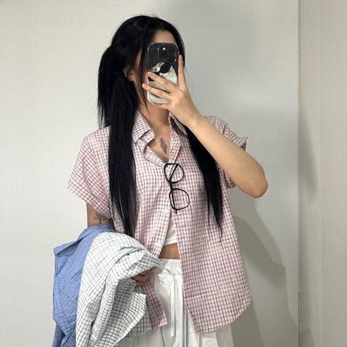 여성 체크 반팔 셔츠 루즈핏 여름 롤업 남방 3color 시원한 빈티지 WFJ8INC