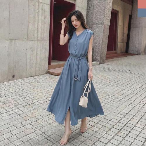 [179st.w]KAA 9006W 쉬폰 V넥 벨트 나시 롱 원피스