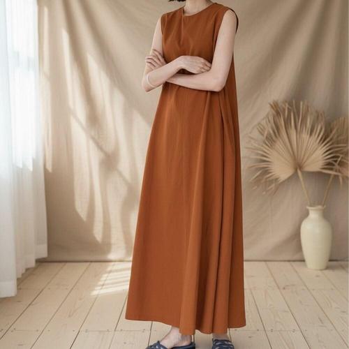 [다잇템]여성 U넥 클래식 슬리브리스 롱 여유핏 원피스