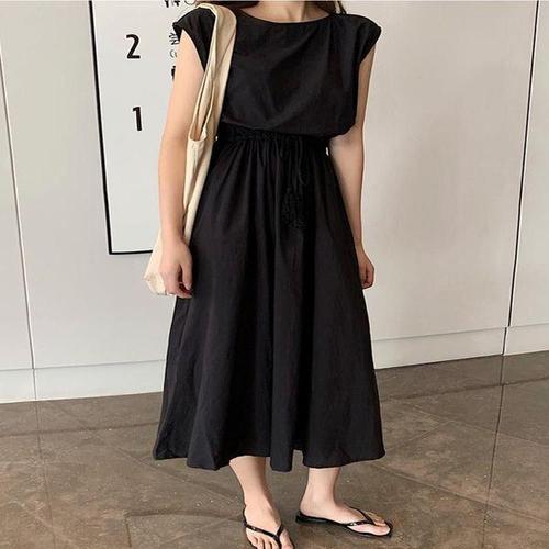 [에이치플러스몰]여름 페미닌 시원한 민소매 롱원피스 허리스트링 3색