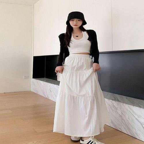 [에이치플러스몰]벨리나 허리밴딩 데일리 주름 롱스커트