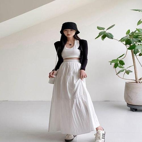 [SBD] A라인 허리밴딩 플리츠 주름치마 나들이룩 롱스커트