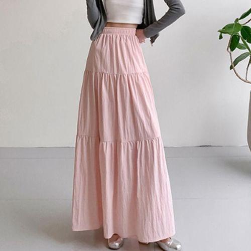 [에이치플러스몰]여성 밴딩 주름 롱스커트 1P 간절기 A라인 긴치마