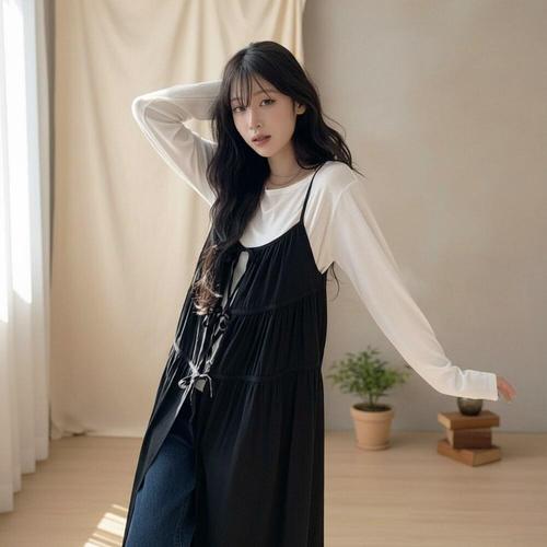 [다잇템][다잇템] 여성 롱슬리브 코르셋 코디 티셔츠 후레아 롱 드레스_23740394_588872