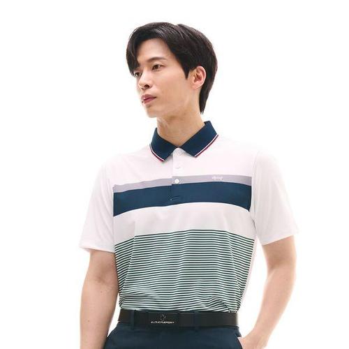 [루이까스텔]남성 와이드 스트라이프 반팔 카라니트7MOSW432A_OD
