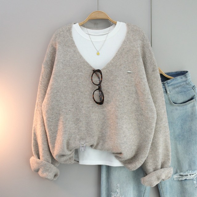 [옷자락]여성 봄가을 데일리 루즈핏 레이어드 브이넥 니트