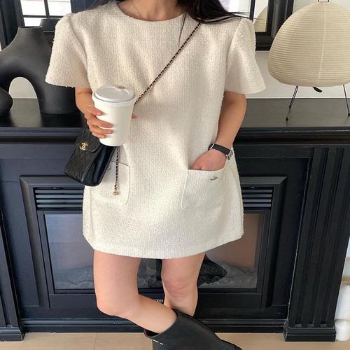 [퀸이즈] [~77까지]리델 라운드넥 캐쥬얼 프린팅 원피스