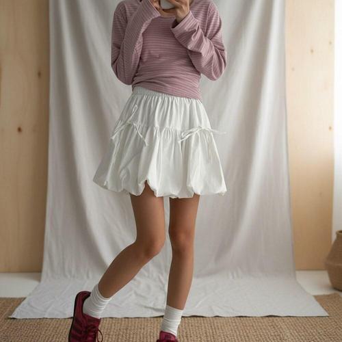 [다잇템]여성 티어드 리본 쁘띠 귀여운 펌킨 스커트