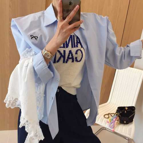리본캔디 미니자수 카라 언발 루즈핏 봄 코튼 셔츠 (2color)