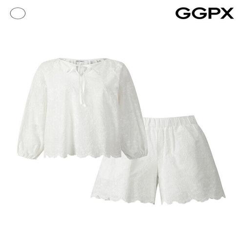 [GGPX]리본넥 자수 레이스 블라우스 셋업 (GQ4ST001F)