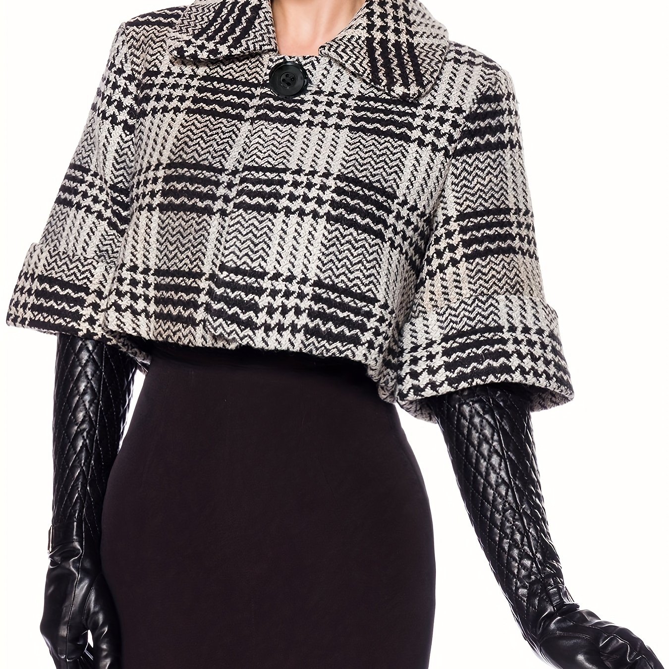 TEMU 세련되고 우아한 디자인의 싱글 버튼 디테일이 특징인 클래식 여성 빈티지 체크 무늬 케이프 숏 코트. 파티 및 이브닝 이벤트와 같은 공식적인 행사에 완벽합니다.