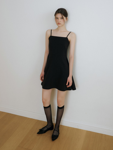 [리올그] 슬리브리스 플레어 미니 원피스 블랙