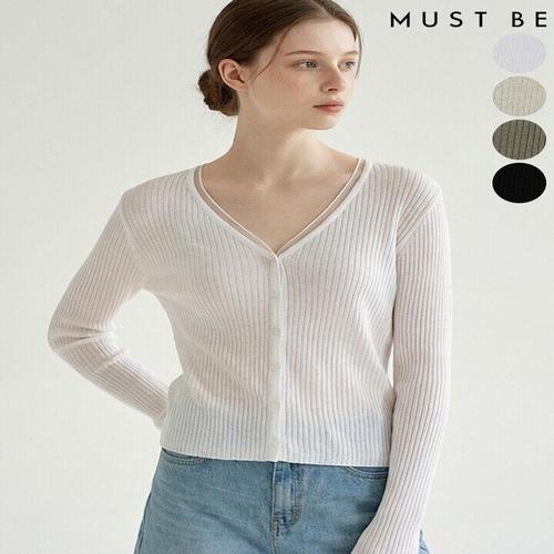 [머스트비]여성 브이넥 린넨혼방 골지 니트 가디건