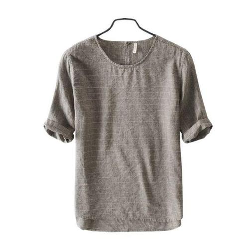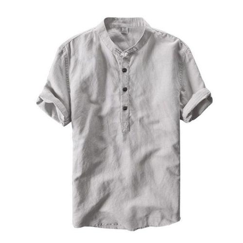 남성용 새 코튼 린넨 셔츠 캐주얼 셔츠 경량 반소매 헨리 비치 셔츠 남성용 하와이 티셔츠