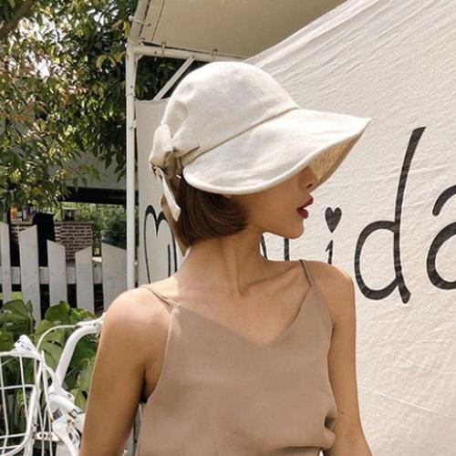 리본 버킷햇 린넨 바캉스 모자 자외선차단 피부보호 WBAFDFD