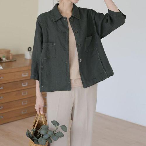 무천도사 여자 여성 재킷 린넨마 봄가을 코트 면마 투포켓 칼라 빅사이즈 솔리드 KKE3