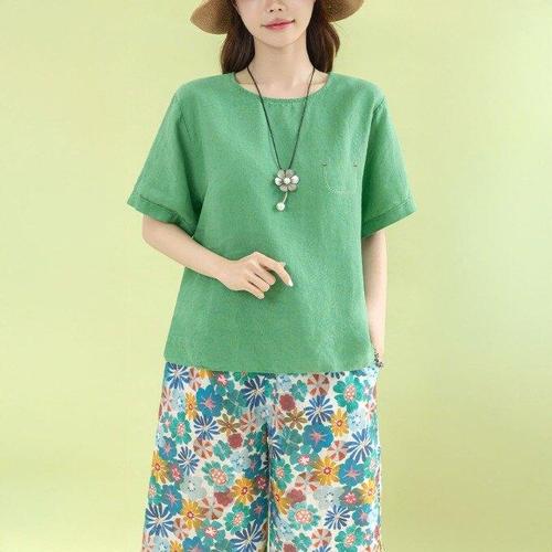 [디얼마미][디얼마미] 라피 스티치 린넨 티 /마담 미시 중년 여성 빅사이즈 40대 50대